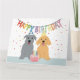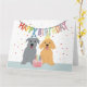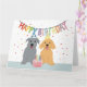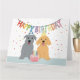Fira en speciell dag med det här vackra födelsedagskortet med två glada hundar som bär party hattar, åtföljt av en färgfull födelsedagskalas med tända ljus. Kortet innehåller det roliga "Grattis på födelsedagen"-budskapet, skapar det perfekten för hundälskare i alla åldrar. Idealisk för att sprida glädje och varm önskemål på vilken födelsedag som helst tillfälle!
