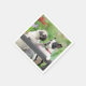 Två söta hundar, en svart maskerad grynspaj och en ung Boston Terrier, svart med vita markeringar, som står sida vid sida och pratar tillsammans i en gammal trävagn i en trädgård. Ett sött dogmatiskt foto från Katho Menden, dessa napkins är en fantastisk presentidé för hund och djurälskare.