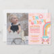 Två Groovy Boho Retro Rainbow 2:a födelsedagsinbjudan Smiley face Groovy One med foto