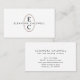 På vit bakgrund placeras två stora brev monogram initialer vertikalt över varandra. Era första och sista namn passar horisontellt mellan de två initialer genom mitten i den metalliska texten från ro guld ram. Det här enkla, mångsidiga affärskortet för logotyp i monogram kan användas för professioneller i hårkläder och smink, som vi har föreslagit i exempeltexten.. eller för nätverksevenemang, eller virtuella assistentföretag med mera. Texten på båda sidor av kortet är lätt att ersätta med dina egna uppgifter om anpassningsmallen.