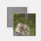 Två Kanada Lynx Kittens spelar på en logg Magnet