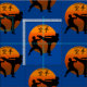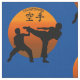 Två Karatekämpar med resningsolen och ordKarate i japanskt språk i orange- och svartfärger