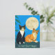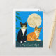 Vykort i en illustration av en svartvit tuxedo-katt och en orange tabby, sitta under en stjärna himmel med en fullt måne. De skapar en serene-scen i natt. Den lekfulla texten "En exakt natt" lägger till stollig i illustrationen.