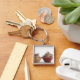 Två kattungar som sovar i bunkar fyrkantig silverfärgad nyckelring