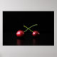 Två körsbär - Två sötkörsbär (prunus avium regina) i levande grönt och lila, fotograferade mot svart bakgrund. © Alan Harman Photography 2013. Alla reserverade Höger. www.alanharmanphotography.com 220518 poster utskrift