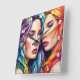Två kvinnor med färgstarka hårreflexer och feta ut fyrkantig klocka