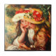 Två läs- flickor i en trädgård av Pierre Renoir Kakelplatta