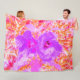 Två Lila och Shock rosa Plum Crazy Hibiscus på Red Fleecefilt