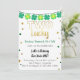Två Lucky Second Birthday-inbjudningar, St Patricks-dagen med schack, guld-stjärnor och grönt & guld-punkter. Bakgrund färg: vitt och blått | Alla utformningar © Dream Design Panama