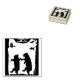 Den här träkonsten frimärke för era hantverksprojekt har två lycklig björnar som dansar under träd i gräset med en uggla på gren ovanför dem.