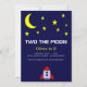 Den här älskling 2 Måne-födelsedagsinbjudan är perfekt för en andra födelsedag party för antingen en pojke eller flicka. Den har en liten raketflygning frakt som flyger in i måne och stjärnor.