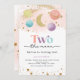 Rosa Watercolor Girl's Two the Måne Rymden 2nd Birthday Investigation