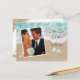 Ditt speciella foto av förlovning, semester eller sommartid och den lekman och roligt som säger att "Two Less Fish in the Sea" accentuerar detta bröllop spara datum-vykort mot bakgrund av turkos av vatten, strand, sjöar och stjärnfisk. Baksidan av detta Spara datumet Postkort dekoreras ytterligare med mer strand, segelceller och stjärnfisk. Om du behöver ytterligare samordningsposter för bröllop kan du bara kontakta oss på prettyfancyinvites@gmail.com med din begäran.