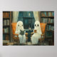 Den här vintage-stil-teckningen av två söta spöken i en mysigt bibliotek-inställning är perfekt för att lägga till en aning av stollig och värme i vilket utrymme som helst. Idealisk för Halloween eller höstinspirerad dekoration, fångar den en söt och pookisk charm som får alla rum att känna sig inbjudna och unika.