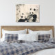Med en enda svart bläck skildrar målaren pandabjörnen med en fullt av nyanser. Bamboo är målat högt och rakt, och löven sväller och sjunger till vinden. Knubbig och söt, två gigantiska pandor här skisseras av blek färg. Tillagt med mörk bläck på ögon, öron och ben karakteriserar subjekt som plumpy och underbar. I den kinesiska kulturen har alltid tjässarna en positiv innebörd. Ett par knubbig pandabandar står dessutom för återförening, harmoni och lycka. Växter har också betydelse för bran, t.ex. bambu som antyder intergreitet. Med dessa två lyckosamma objekt är bild alltså fullt av önskemål.