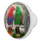 Två papegojor på en keramisk dörrknopp och knopp