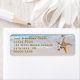Tropiska helgdag eller adressetiketter för daglig anpassningsbar med malltext. Två stjärnor (havs-stjärnor) och vatten-bakgrundsbild med brunt utskrivet teckensnitt stil.
