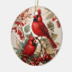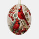 Två röda nordliga kardinalfåglar och bär julgransprydnad keramik