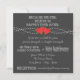 vintage med svart och vit rustik kalkboard- i land. De här kallblodiga bröllopsinbjudningarna har två sammanflätade röda hjärtan och "för att vi fortfarande tror på lycka efter". proklamation och traditionell"Heliga Matrimony". Den här enkla och traditionella inbjudan till ett bröllop på tavlan tillför en aning gammaldags hälsosamhet!