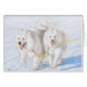 Två Samoyeds som är tävlings- till och med snön Hälsningskort