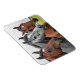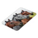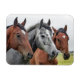Fotografi av tre hästar, från nacke uppåt, bredvid varandra, två segment med grått i mitten