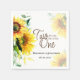 Napkin i personligen bröllop visar en enkel vattenfärgskonstruktion i rustik blommigt med solblommor och grönenergi av elegant gult. Den innehåller en del inspirerande bibelverse, "Två ska bli ett." Anpassa med namn och datum.