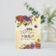 Höstbröllop gratulationskort med inspirerande citat ur skriften visar en vacker rustik höstblomma i akvarell med lila, bränt orange och gula blommor och grönska. Det visar Bibelvers 1 Mos 2:24, "Och de två ska bli ett."