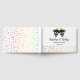 Två skallbrider och konfetti i regnbåge färg Halloween lesbisk bröllop gäst bok. Den här bröllop-designen har två briders döskallar med bågar i regnbåge i färg och färglösa konfetti. Baksidan innehåller en mönster av färggranna konfetti.