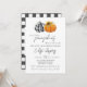 Två små pumpor är på väg! Fira det förväntade mamma med ett fall som kallas baby sprinkle inbjudan. Två söta pumpor i svart och vit buffelplatta och klassisk orange lägger till lite stollig och rustik charm till inbjudan. En solrossolja adsorterar orangens pumpa. Baksidan har en svart och vit buffelplatta med en söt dikt. Alla detaljer kan anpassas. Detta är den perfekt könsmognadsinbjudan till höstbabyduschen för att förvänta sig twillingar.