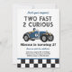 Två snabba 2 nyfikna festracingbil 2-års födelsedagsfest inbjudan. All text är redigerbar, anpassa den för att passa din händelse.