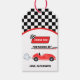 Två snabba röda bilnöjespojkens födelsedag i tävli presentetikett