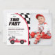 Två snabba röda racerbil födelsedagsfest foto inbjudningar