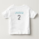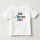 Roligt tävling bilnöjesfjortskjorta med vattenfärg som illustrerar vintage blå bil med rött flammor. Texten på framsidan säger "TWO FAST" och du kan lägga till ditt barns och ditt barns namn och ålder på baksidan.