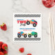 ÖKA TVÅ SNABBA MONSTER LASTBIL FÖDELSEDAGSFEST TEMA. FÄRG LASTBILAR MED SVART OCH VITGRUVT KONTROLLERAT MÖNSTER RETRO STIL EDITABLE BARNS FÖDELSEDAG.