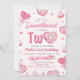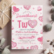 Vår inbjudan till två söta födelsedagar är det perfekta sättet att inbjuda vänner och familj till din fest. Designen har ett godistema, med gott om utrymme för alla viktiga detaljer som datum, tid och plats för festen. Perfekt för alla åldrar, kön och tema för festen, det är säkert att imponera på dina gäster och få dem att bli upphetsade inför firandet.