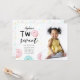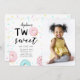 Cute 2-födelsedagsfest inbjudan-mallkort för en födelsedagsfest av nöttema med munnötillustration med sprinkler. Texten längst upp säger "två söta". Anpassa den här produkten genom att lägga till barnets namn, party och ett foto.