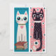 Skapa dina egna bokmärken från detta tryckta kort. Klipp helt enkelt runt bilderna för att skapa två söta bokmärken. Det ena har en vit katt med stora blå ögon, en grön halskrage med gula prickar och ett rosa hjärta hängande från den medan den står på en hög med böcker. Bakgrunden är enfärgat blå med "Just one more chapter!" skrivet tvärs över toppen. Den andra är en svart kattunge med en vit halskrage, stora runda ögon och rosiga kinder. Bakgrunden är rosa med vita och blå blommor. Kom ihåg att markera rutan bredvid "Remove from back of card" under Zazzle-logotypen, så att baksidorna blir tomma.