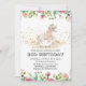 En vacker enhörn i vattenfärgad hand, färgad stil, omgiven av ömtåliga blommor och mousserande guldstjärnor glitter. Ett inbjudningskort för att fira ditt barns andra födelsedag.
