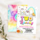 Flickans två talesdag på andra födelsedagen - nattfärgad regnbåge Retro Groovy Ghost Hippie Halloween-födelsedagsinbjudan