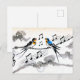 Två svalor sjunger på en kraftledning på kinesiska vykort