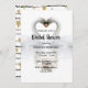 Ett enkelt och elegant inbjudningskort för möhippan med kärlek som tema. Två vackra svanar som böjer sig ihop och bildar en hjärtform. Vit bakgrund. Mallar för briderna namn och party. Black brev. Bakåt: En svart bakgrund i guld med gyllene hjärtan och svart linjer.