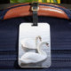 Två Svanar simmande på Tranquil Sjö Bagagebricka