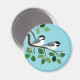 Fågelkonst på magneter på två svarta kycklingar sitta på träd gren med ljusbakgrund i blå himmel