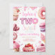 Firar din lilla lilla milstolpe med den här vackra "TWO Sweet"-födelsedagsinbjudan! Perfekt för en flickas andra födelsedag party, den här redigerbara inbjudan innehåller ett roligt rosa desserttema med nötter, muffinsar, glass, makaroner och sprinkler - allt i drömmande pastel färg.