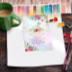 En vacker enhörn i vattenfärgat handmålat stil omgiven av ömtåliga blommor och mousserande [simulerade] stjärnor från guld glitter. Ett inbjudningskort för att fira ditt barns andra födelsedag.
