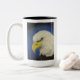 Två Tone Mugg med Eagles huvud över en blå bakgrund. Artwork "Fearless" av Greggs Deep Färg.