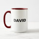 Behållan är enkel och djärv med personlig mugg som har en ren, minimalistisk utformning! Visning ditt namn eller anpassningsbarnas text med fet svart text på en elegant vit keramisk bas, accentuerad med ett burgundärt handtag och insida för en popo på färg. Anpassadet mugg är ett tänkvärt och mångsidigt val för alla tillfälle! Skriv bara texten och användan "Redigera med Design Verktyg" om du vill centrera eller flytta runt texten.