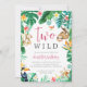 Bjud in gäster till ditt barns sommarliga tropiska djungel-tema tvåårsfest med dessa färgglada inbjudningar. Ön-inspirerad design med monstera blad och grön akvarell växtlighet med apor, en sengångare, en kolibri och en papegoja. Färgglada tropiska blomsteraccent avslutar designen. Personalisera med ditt barns namn i livfull rosa skrivstil, tillsammans med festens anledning och detaljer. "Two Wild" visas högst upp.