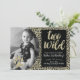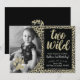 Denna två vilda leopard-födelsedagsinbjudan har falskt guld glitter leopardtryck för att lägga till lite glamour till din 2-årings vilda födelsedagsfest!