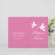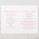 Dubbla- sida två vita duvor med två rosa rosett band bröllopsprogram. En del av den vita doven bröllop är stationär. Söt rosa och vita skuggor. Redigera det här bröllopsprogrammet med ditt eget namn, data, ceremonin, bröllopsfestens medarbetare och tack. Ett enkelt program för elegant ersätter bara exempeltexten med bröllop-informationen och delar upp program till hälften vid leverans. Unik design av Sarah Trett.